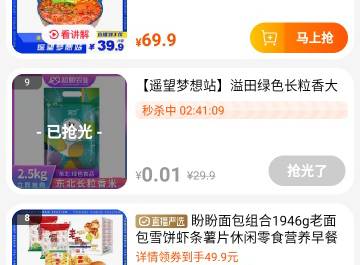 直播间不定时一分钱秒杀大米,现在已经抢光了,有耐心的挂后台去蹲,看会不会补。