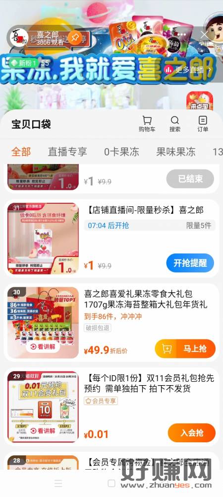 淘宝直播喜之郎一元秒杀,[觉得价格可以的去抢,还有5,6分钟