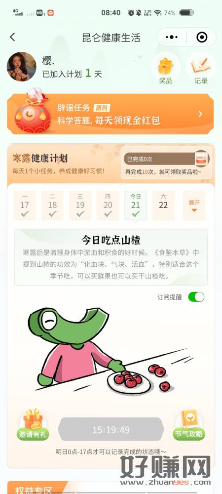 看图,辟谣任务答对7题有大包 目前看见过8.88 然后就是那里有个邀请好友 拉5个的话是1.88 由于邀请帖是6元 利润是1.88所以我没有发邀请帖,官方没有回复我,我发个帖艾特官方让他换码,@小地瓜 @小嘀咕