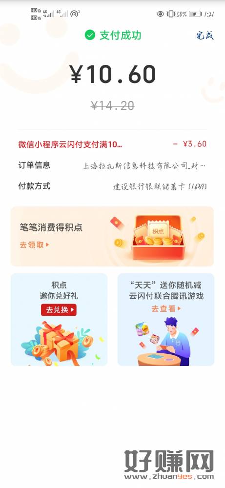 微信饿了么小程序调起云闪付支付有优惠