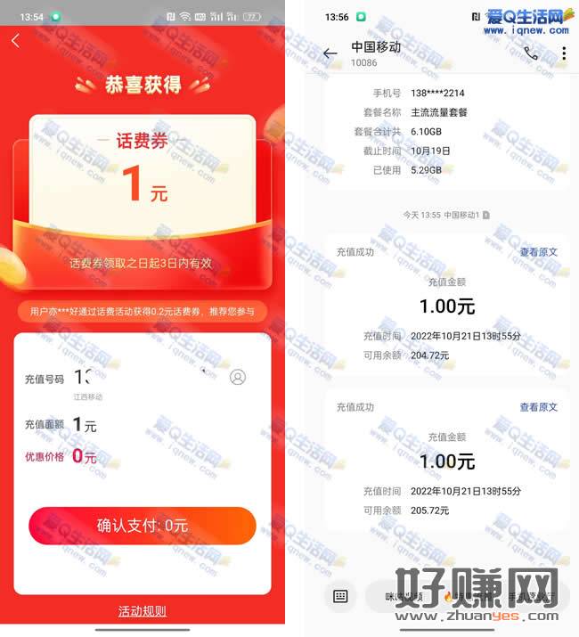1元话费礼包充值0元充值1元话费,一次类推,大家可以自己去邀请人获得