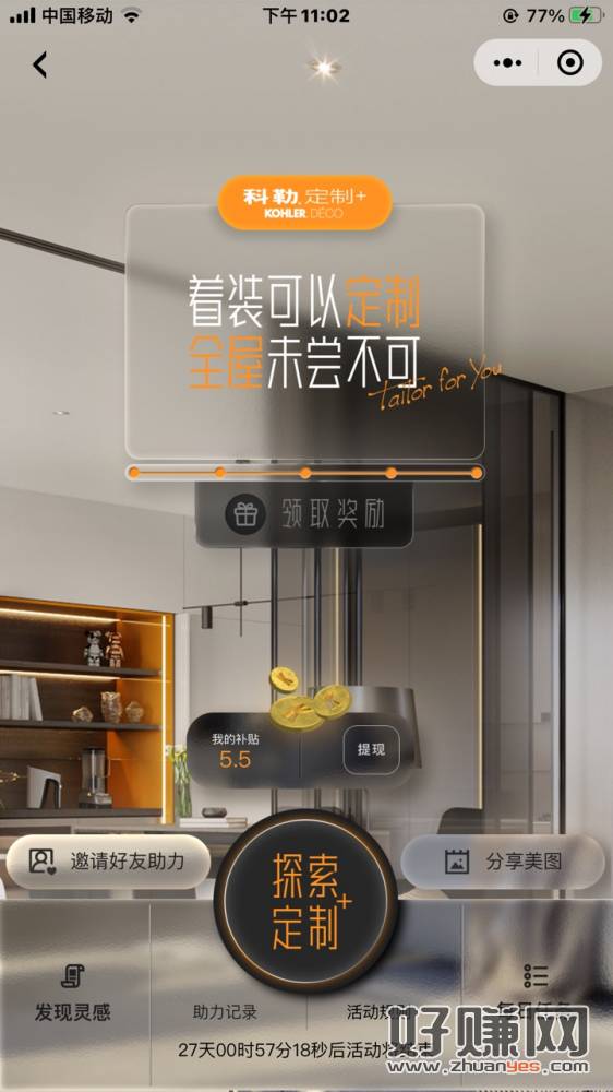 #小程序://科勒厨房全屋定制/DzfJQAGGPiYBQkd。完成每日任务,拉小号也有钱,满1r提现