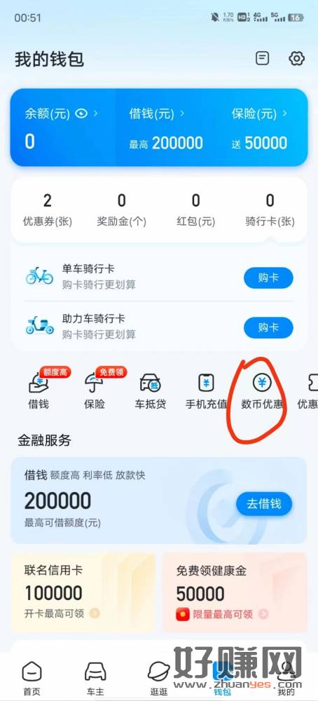 哈啰app 定位上海。登陆-我的钱包-下滑找到交行数币