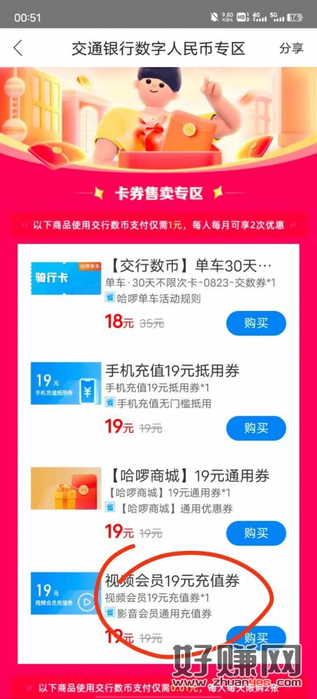 先在哈啰app 登陆号码相对应的数币交行数币推送子钱包并充值1元。点击购买自动扣款1元,显示19,实际1元