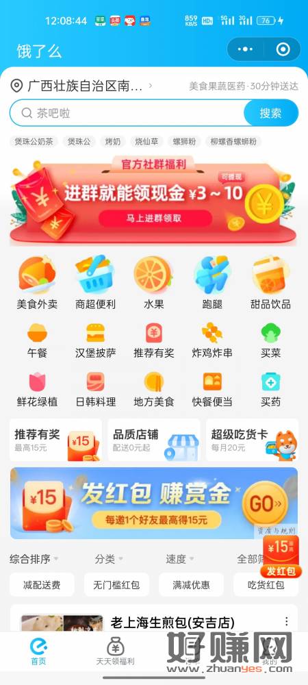 又刷新了!饿了么拉二人进群5元,悬赏平台挂0.2也有人做,放心玩官方活动,提现秒到!没有显示可以换位置到南宁市!之前的老活动!