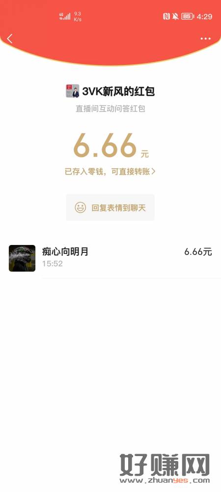 微信-发现-视频号-搜索3VK新风,每晚七点半开始直播,大概一个多小时,期间主播会进行有奖互动,第一个答对的给6.66,有时候问题难了是8.88或者9.99,题目都很简单,每天都有直播,隔天再去蹲,会有重复的题目,部分答案我放图4了