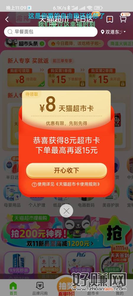 天猫超市,进去弹窗领8天猫卡,具体自测