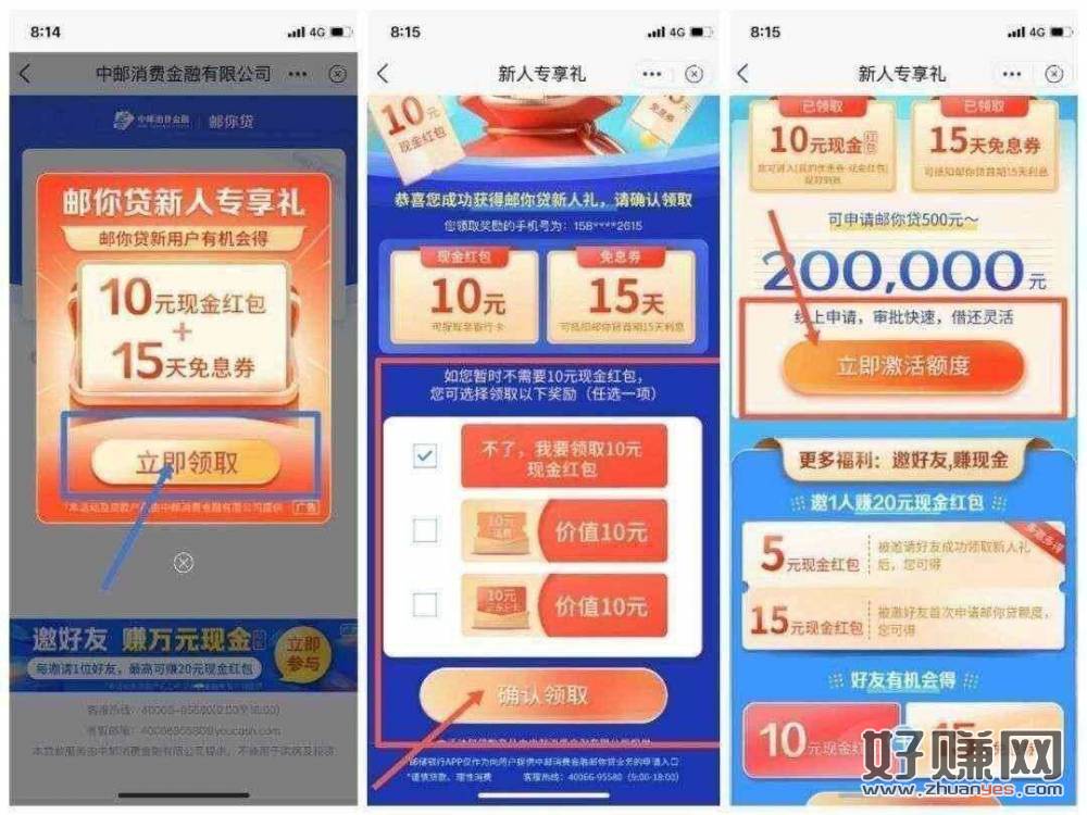 必须是首次点开邮你贷的用户,不用真出额度,领取10现金或者10E卡