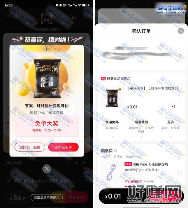 手机天猫赢旺旺浪味鲜黑松露免单 亲测已免单