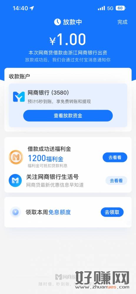 支付宝首页搜索月月赚 有一个借款的 借1元再还回去就行了