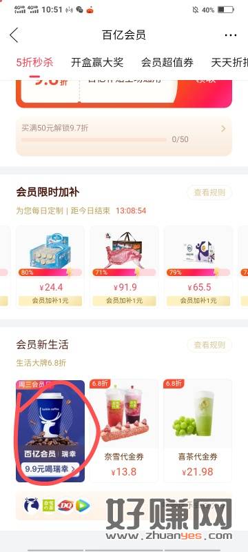 拼多多首页 百亿补贴 点进去点百亿会员最下面会员新活动购买32瑞幸