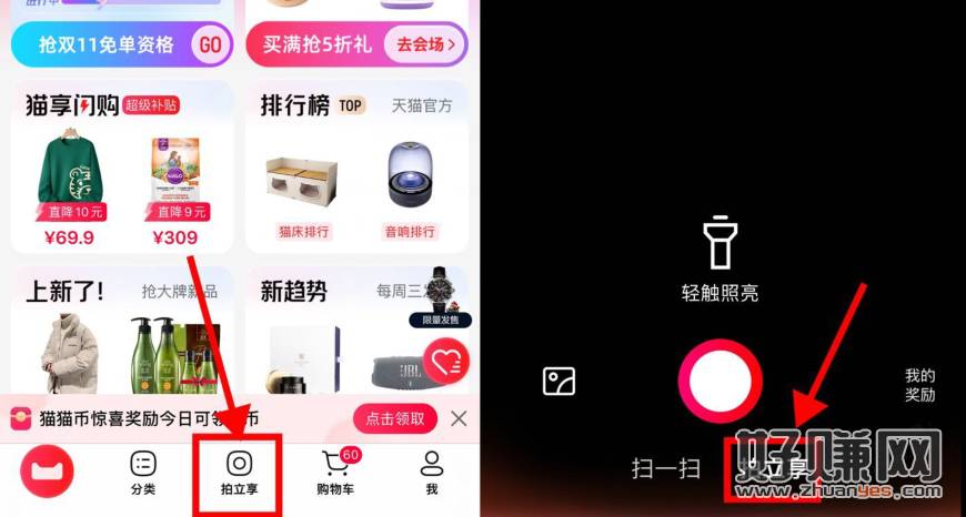 天猫APP最新版->底部“拍立享”->点开顶部然后扫今日线索图->抽中免单支付0.01元包邮(抽中券没用)