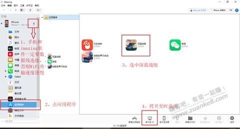 6、打开imazing软件,必须要用数据线把老手机和电脑连接,否则WiFi连接传输速度很慢,最好把WiFi关掉;