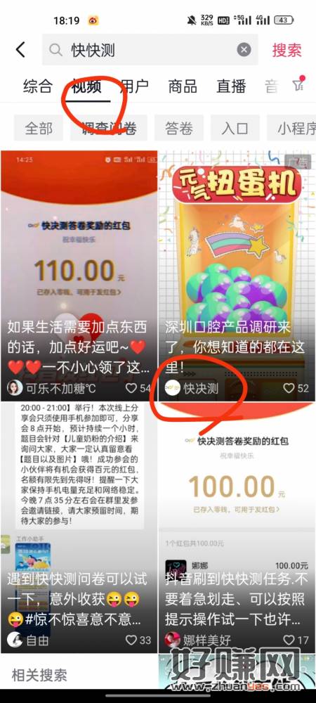 抖音搜快快测,多个问卷连续答,认真答