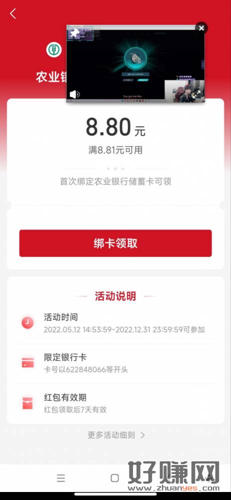绑定支付宝得8.8,这个是限定银行卡开头的,以前绑定过的还可以在鲁一遍,