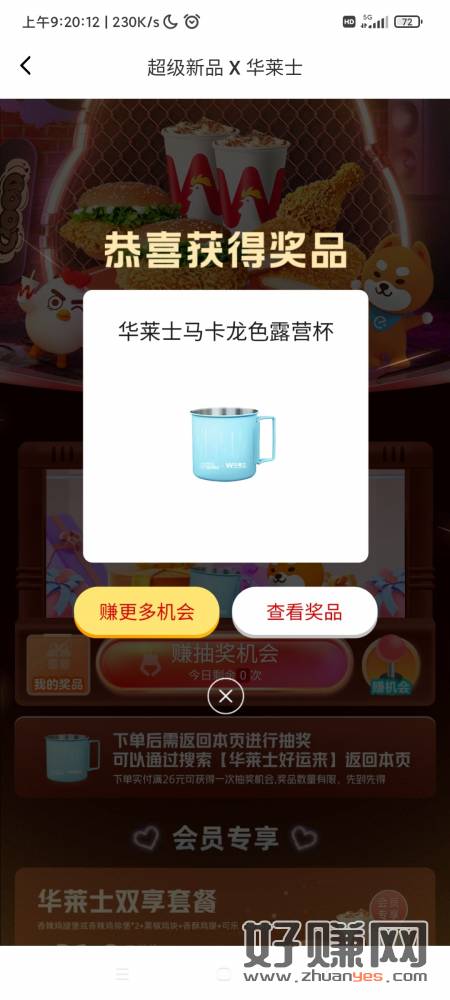 饿了么APP首页下拉,随便下一单华莱士的预定单,抽奖,应该必