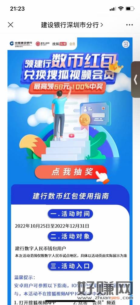 建行数字人名币活动,需要定位人民币试点地区,上面写的抽到可以兑换搜狐视频会员兑换的是码 应该可以卖 不能卖留着用也行