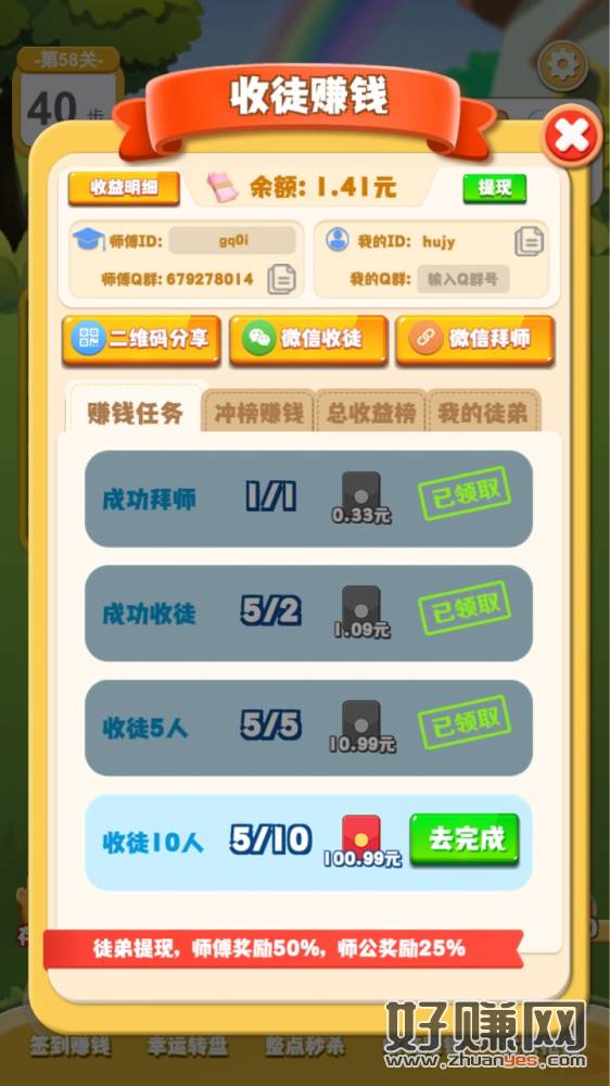 狗狗消消消拉五人十元,须多看几条广告才能提现到账,拉不到人的