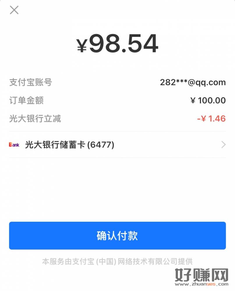 小毛 嫌麻烦的可以不撸 闲鱼给小号转账100-1.46光大银