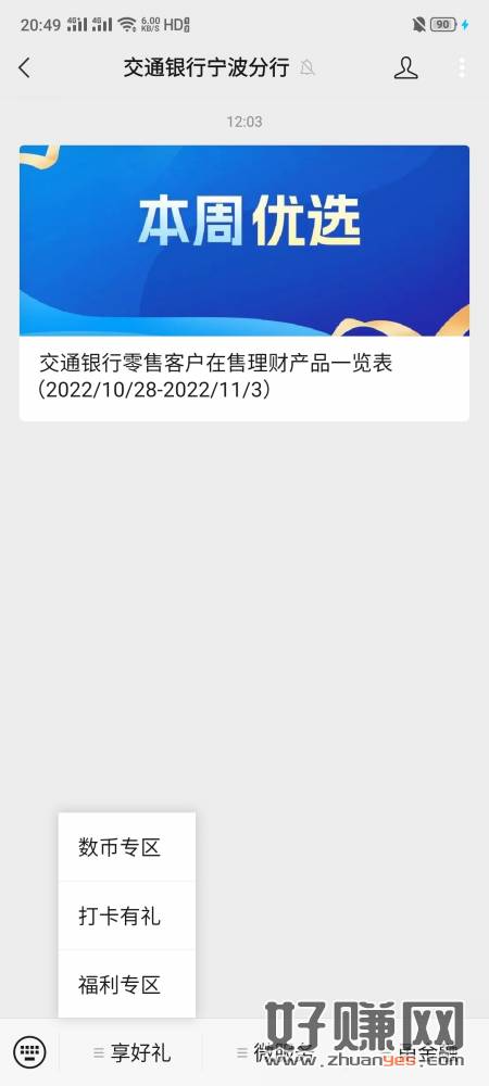 交行公众号左二定位宁波打卡宁波,3天7天都有立减金