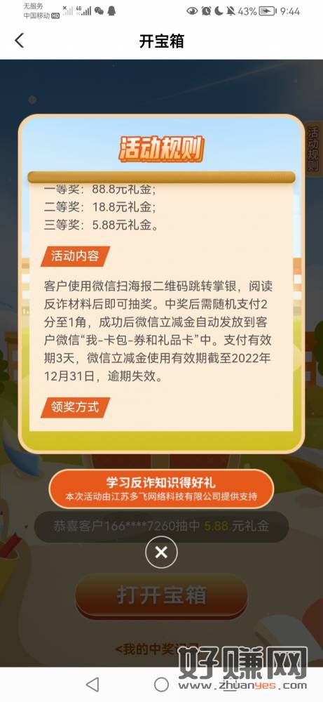 微信扫码跳转农行 直接抽5.88必中 速去 不用飞四川!!!