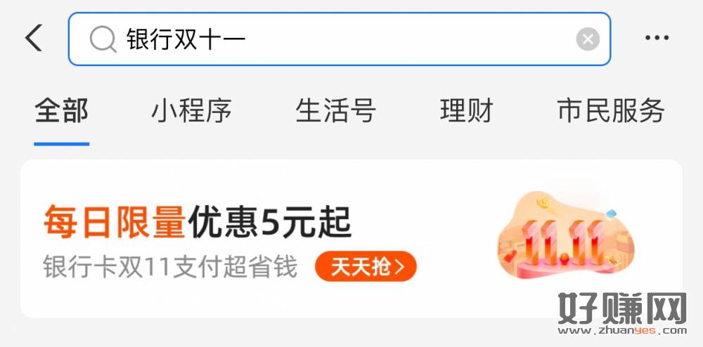 支付宝搜索 银行双十一 20-5 可换信用卡