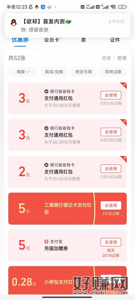 支付宝搜建行省钱卡,2.99买8,每天销核1张,赚5r,可以