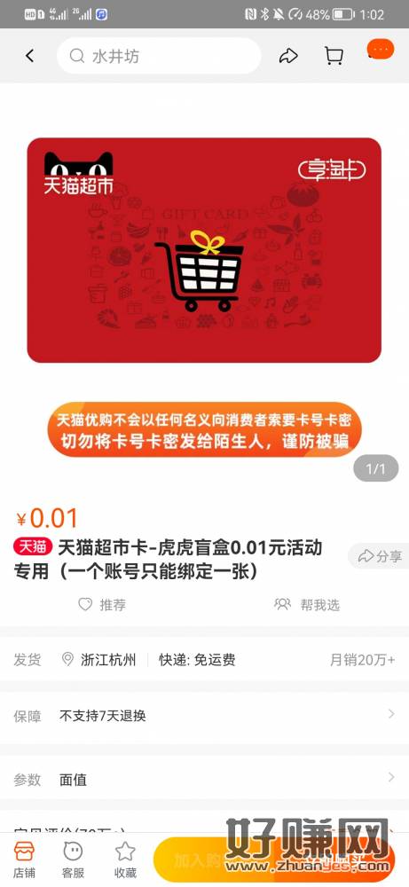 CZ3457 天喵超市卡-虎虎盲盒0.01元活动专用(一个账号只能绑定一张)