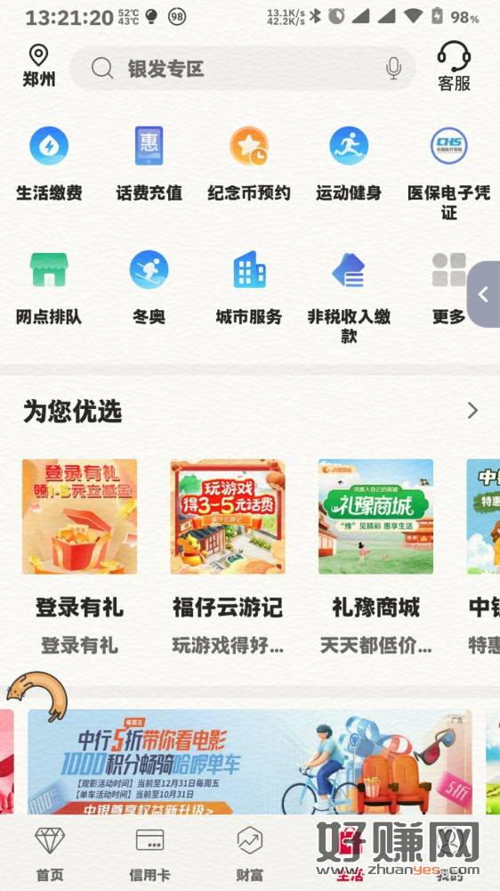河南,中国银行,生活,为您优选,登录有礼,大概率1元,看到帮忙加个果呗