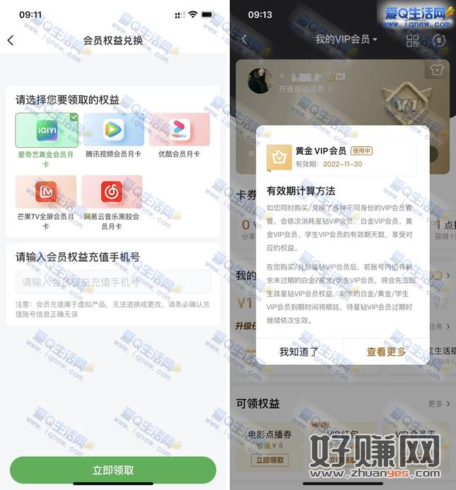 可以领取腾讯视频VIP月卡/优酷视频月卡/爱奇艺会员月卡等,大家有需要的可以去参加一下