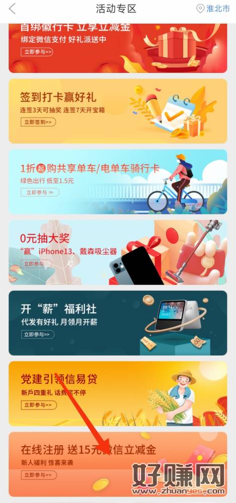 徽商银行,破定位淮北市安卓用幻影,苹果用爱思,挂淮北市开二类卡,手机银行搜一键绑卡绑微信10,23岁以下学生领15(图1)还有个新人礼15(应该跟学生冲突,图2),一天抽一次必中5-50(图3),4次保底20