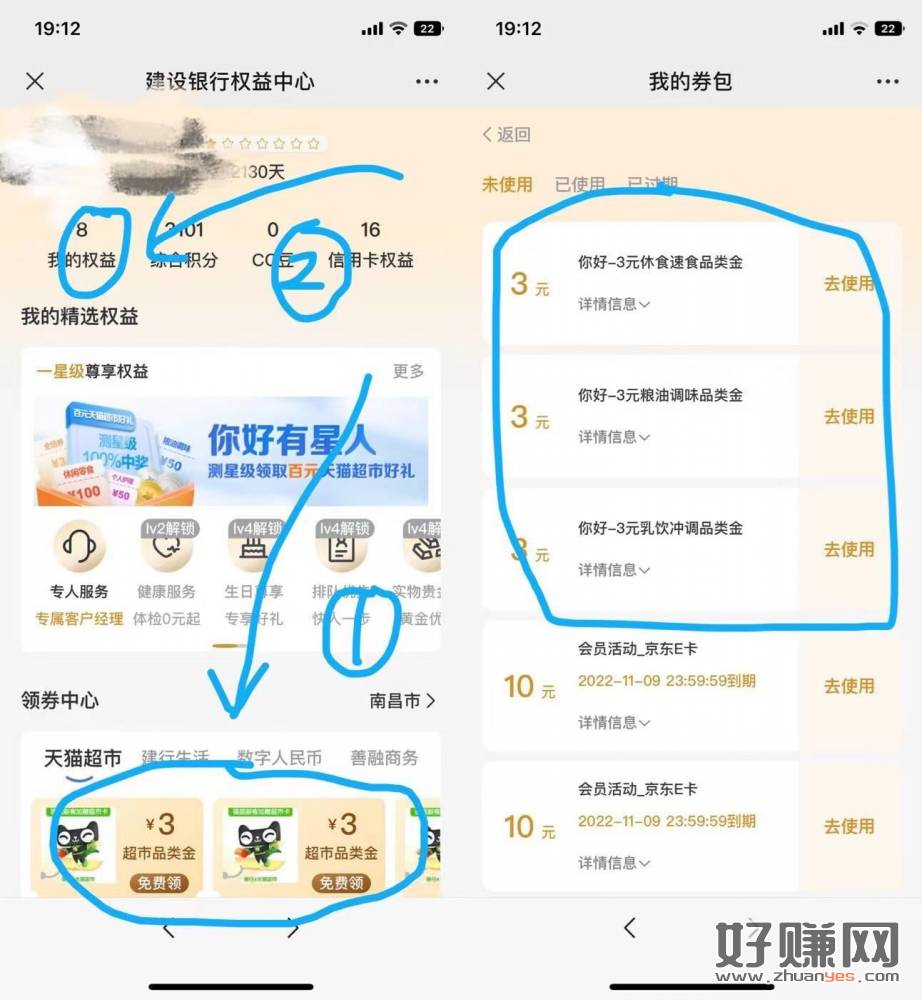 左四-我的权益中心 按图操作全领完,相当于6猫超卡 手动兑换