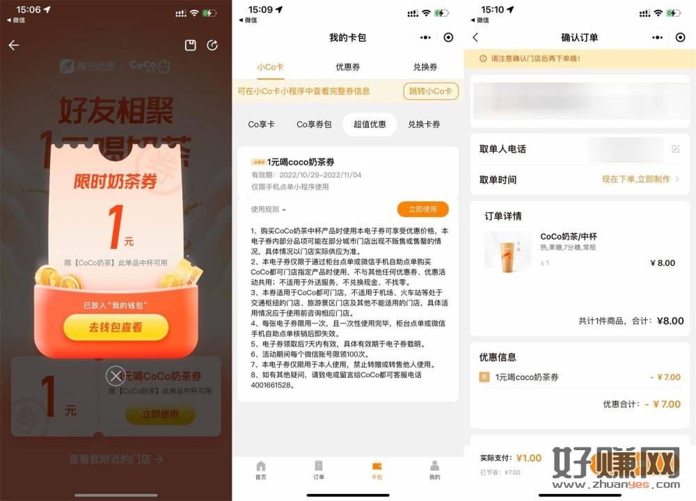 腾讯地图领1元喝coco奶茶券 打开地址跳转到腾讯地图APP->直接领取(需3分钟左右自动同步到CoCo卡包) 直接小程序点单即可使用卡券 活动地址: