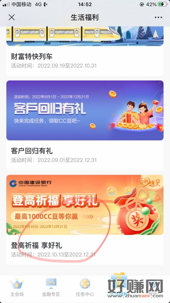 步骤:公众号:中国建设银行,按图进去,做完两个任务,必得1000cc豆,秒兑换!