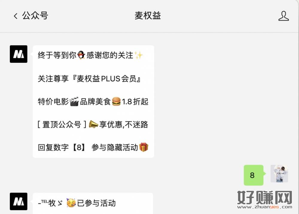 微信关注:“麦权益”公众号,回复数字“8”参与活动即可。