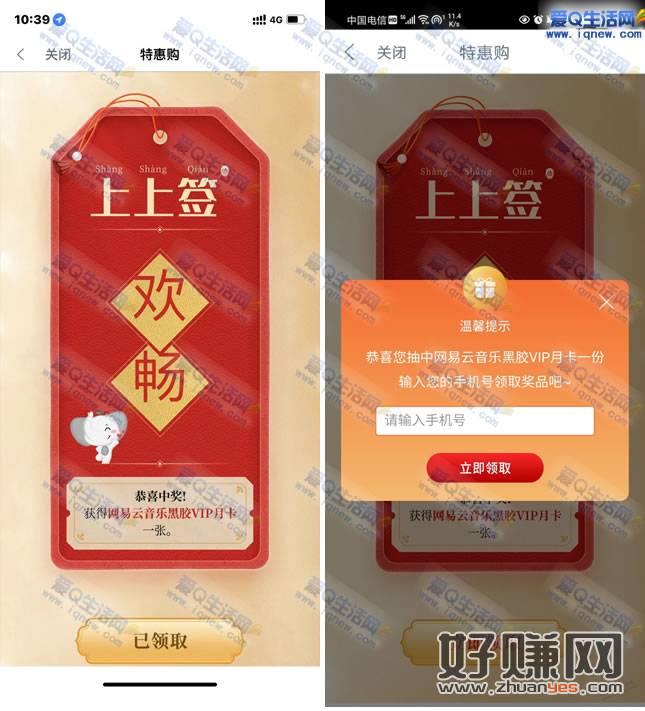 工行抽网易云黑胶VIP月卡 亲测抽中领取秒到