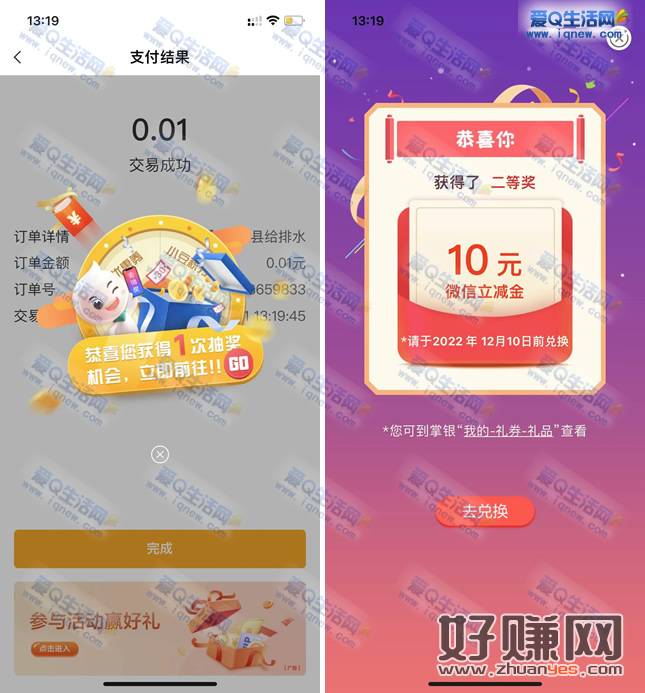 这个活动是去完成1笔0.01元的缴费即可抽奖一次,可以去缴费2次可能两次都中,不必中,可能奖品抽完了就没了