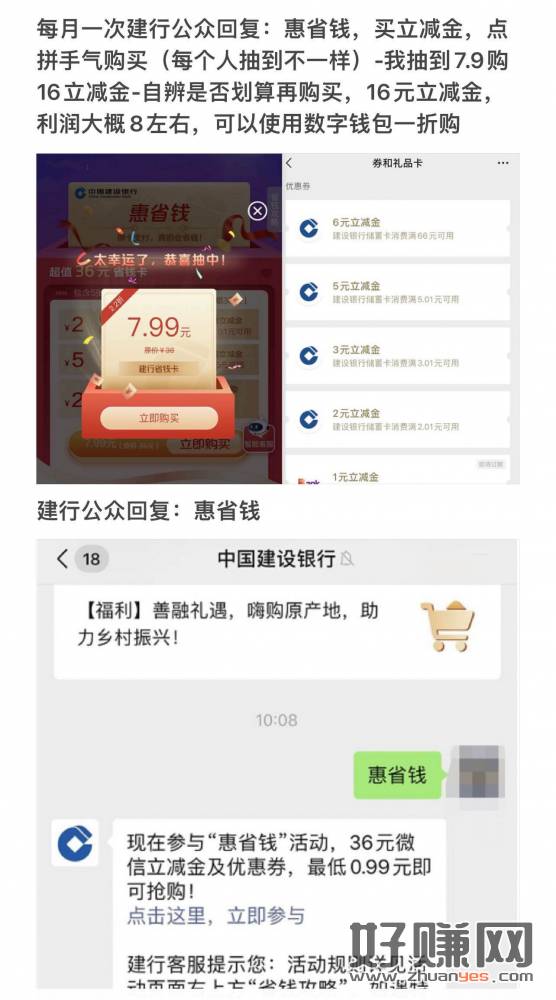 一.建行每月一次1毛最高买38毛立减 有建行的每月都可以领!