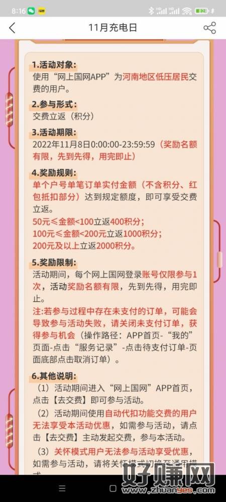 网上国网APP,河南用户,交200元及以上返2000积分,2000积分充电可以抵扣相当于10块钱。