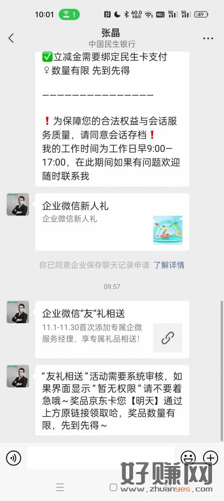昨天民生银行客服,没权限领取的现在有消息去领,加了就有