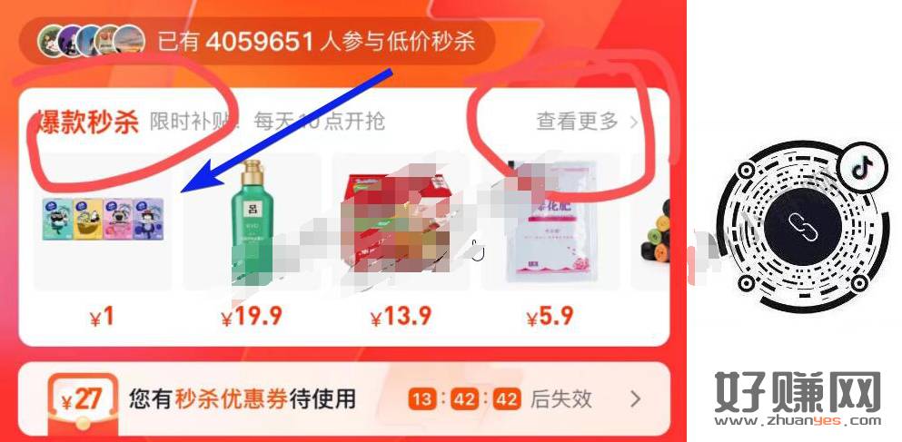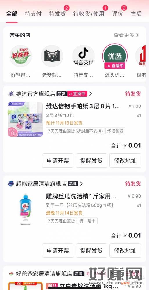 抖音扫码,有1元维达,叠加之前吧里发的抖音支付券,实付0.01