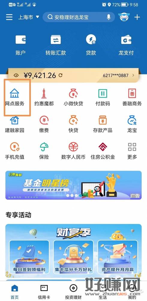 需要有建设银行手机银行app和建行生活app 操作方式如下图 如果没有建行生活app扫码下载