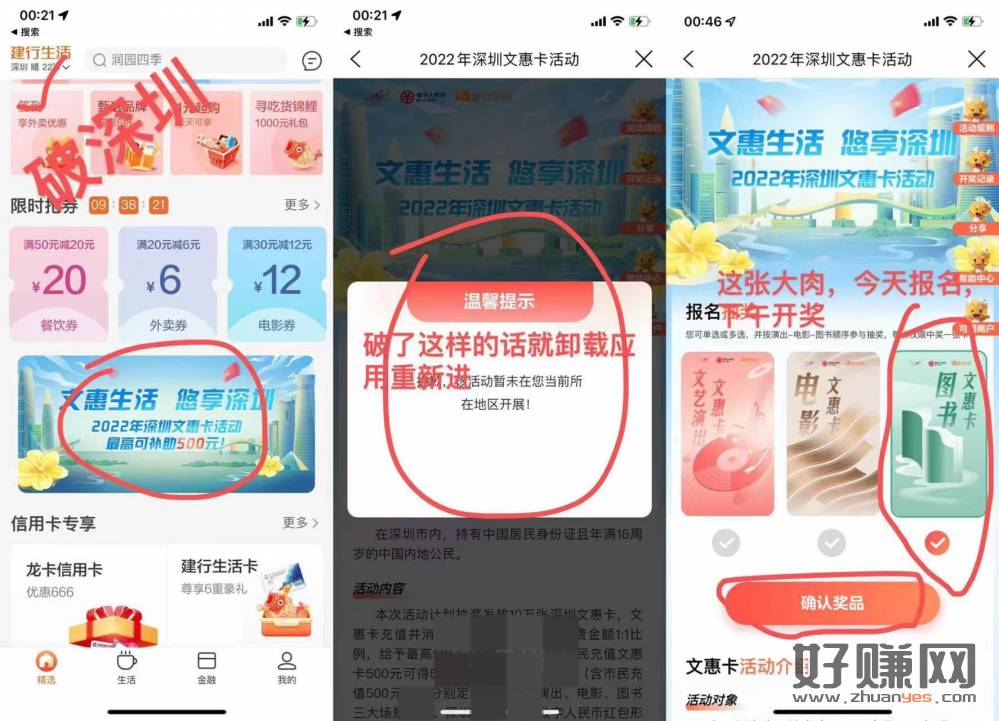 建行生活app破定位深圳市,报名深圳文惠图书,奖品只选择图书文惠卡不要多选,报错的记得去修改抽奖选项