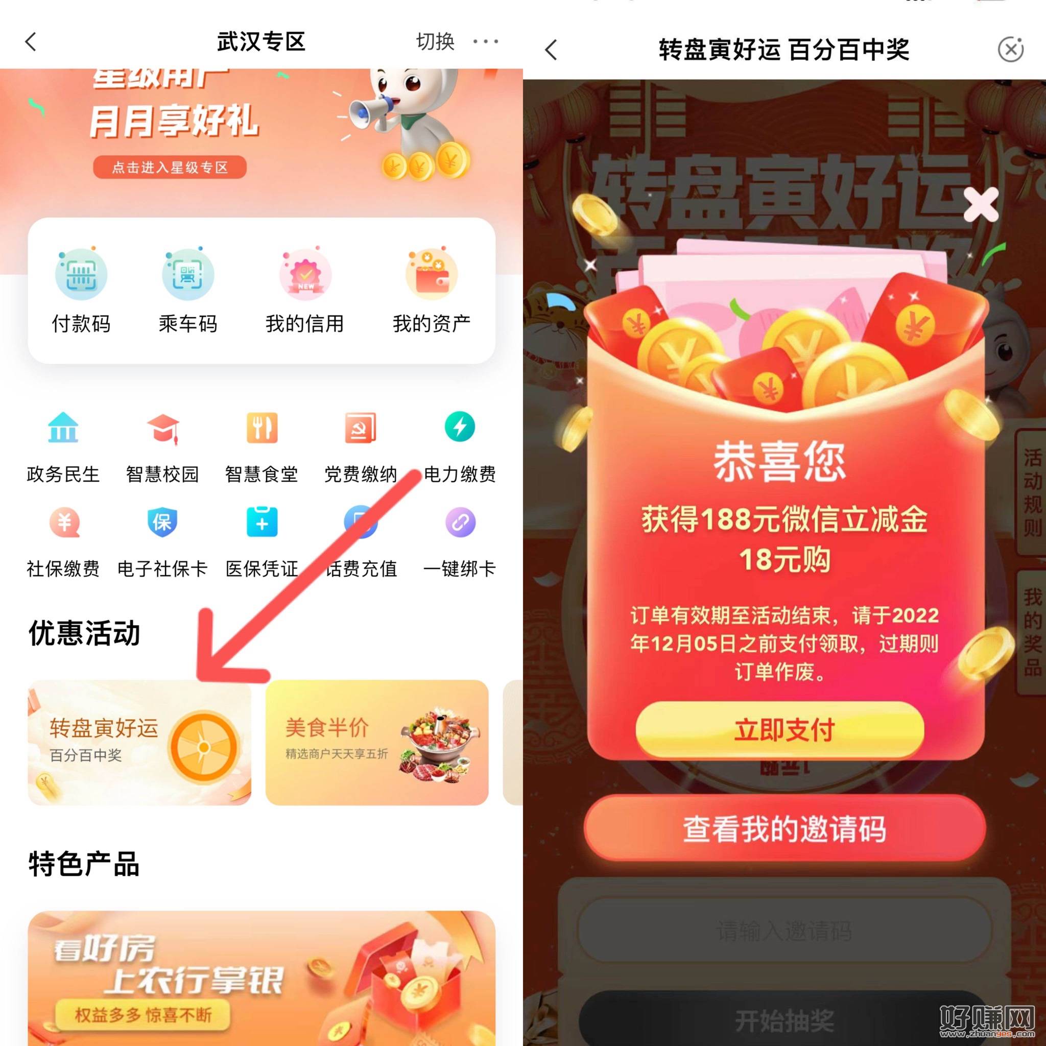 支付宝跳转建设银行抽最高10红包,具体步骤如图所示