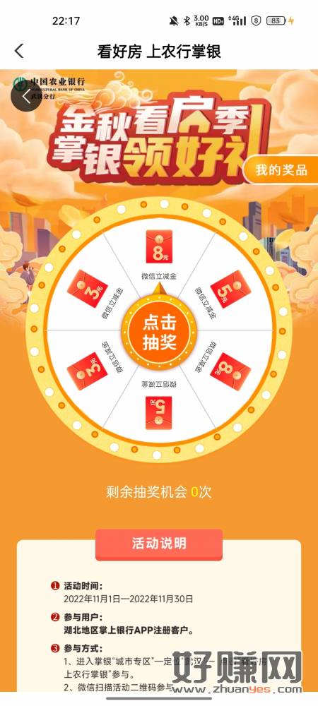农行武汉城市专区还可以抽一次奖掌上好礼必中