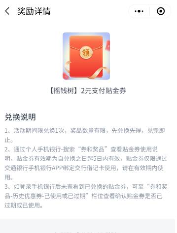 交行搜索消费达标有奖,三个任务都完成,有水得3元支付券