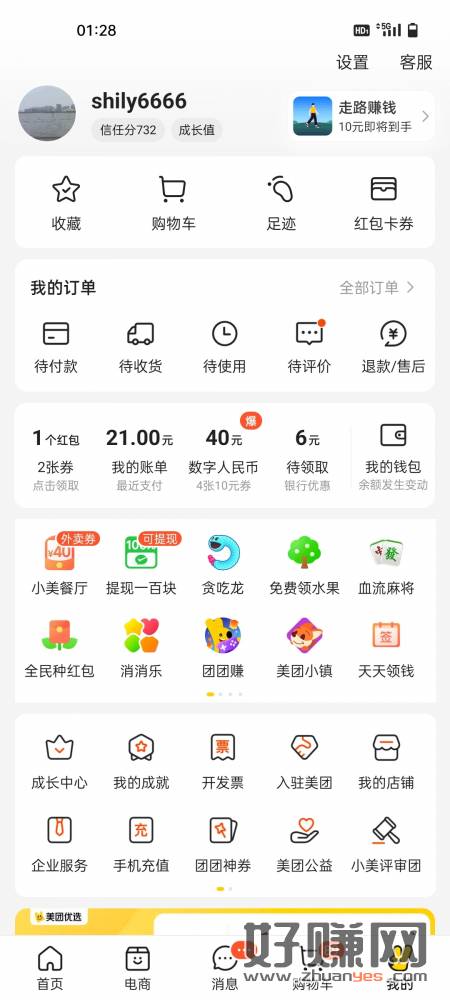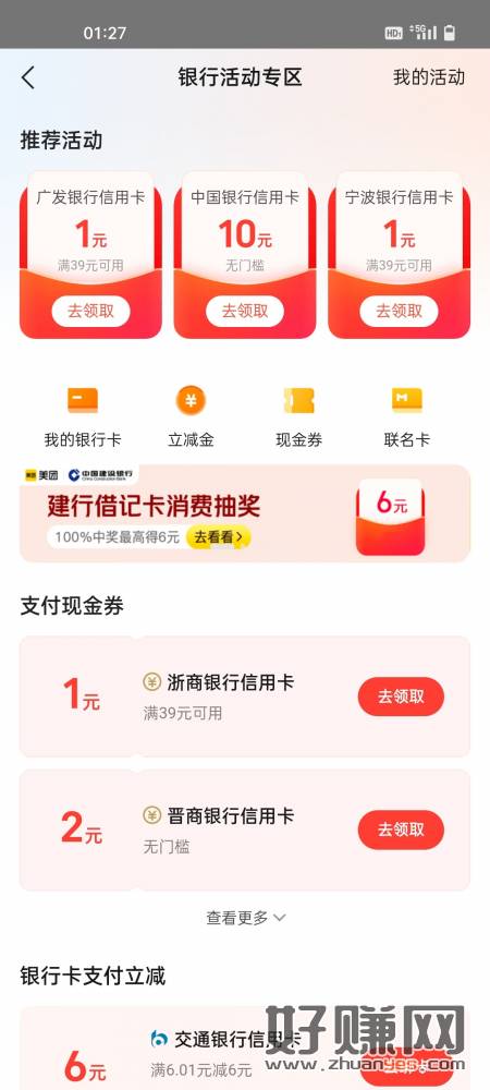 美团经常用的来,我的钱包旁边,6元待领取,中间横幅,建行消费