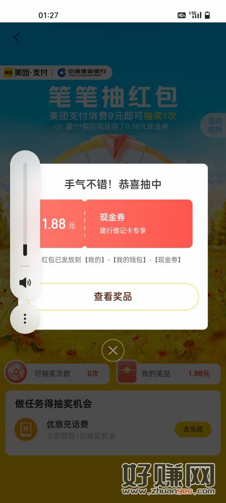 美团经常用的来,我的钱包旁边,6元待领取,中间横幅,建行消费抽,美团近期消费9笔以上的去抽,一天消费最多加2次