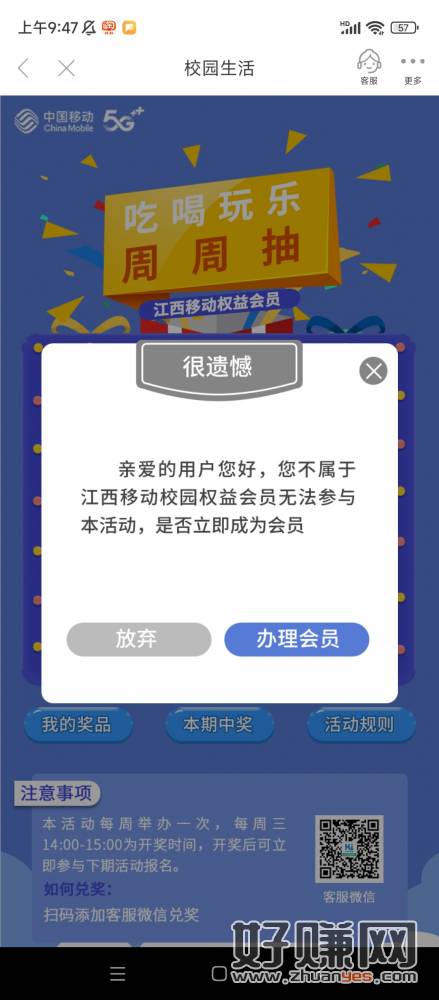 谁知道江西移动校园权益会员怎么开?教我开成了15r