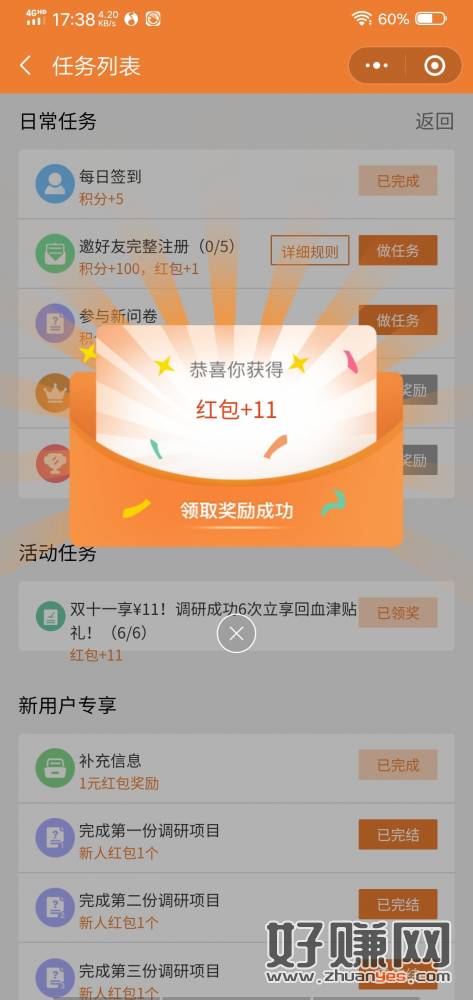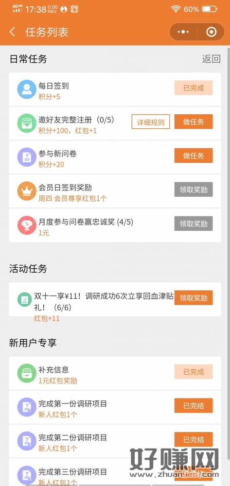下拉点图问卷小程序进入,有个双十一任务需要答过6次问卷领取1